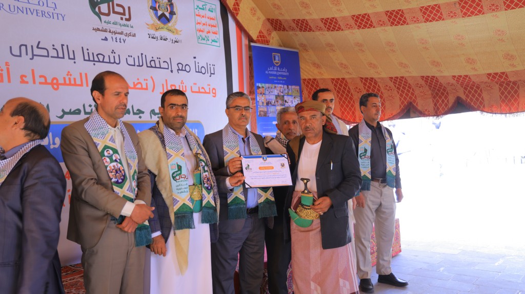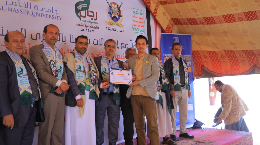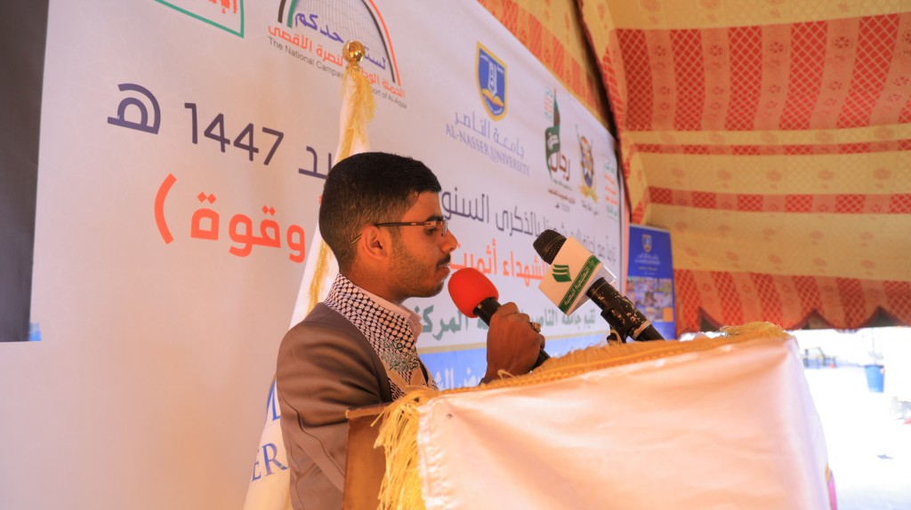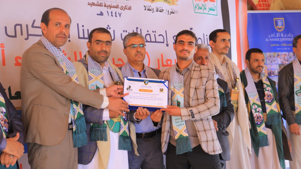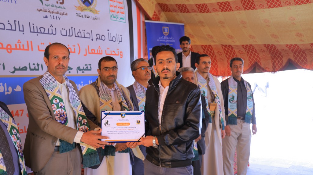 تزامنًا مع احتفالات شعبنا اليمني بالذكرى السنوية للش..ه.يد 1447هـ، وتحت شعار “تضحيات الش..ه.داء أثمرت عزًا ونصرًا وقوة”، أقامت جامعة الناصر صباح اليوم الفعالية المركزية للذكرى السنوية للش..هي د، والتي خُصصت لتكريم أسر الش..ه داء من منتسبي الجامعة وطلابها، وافتتاح معرض الش ه..داء في ساحة الجامعة.