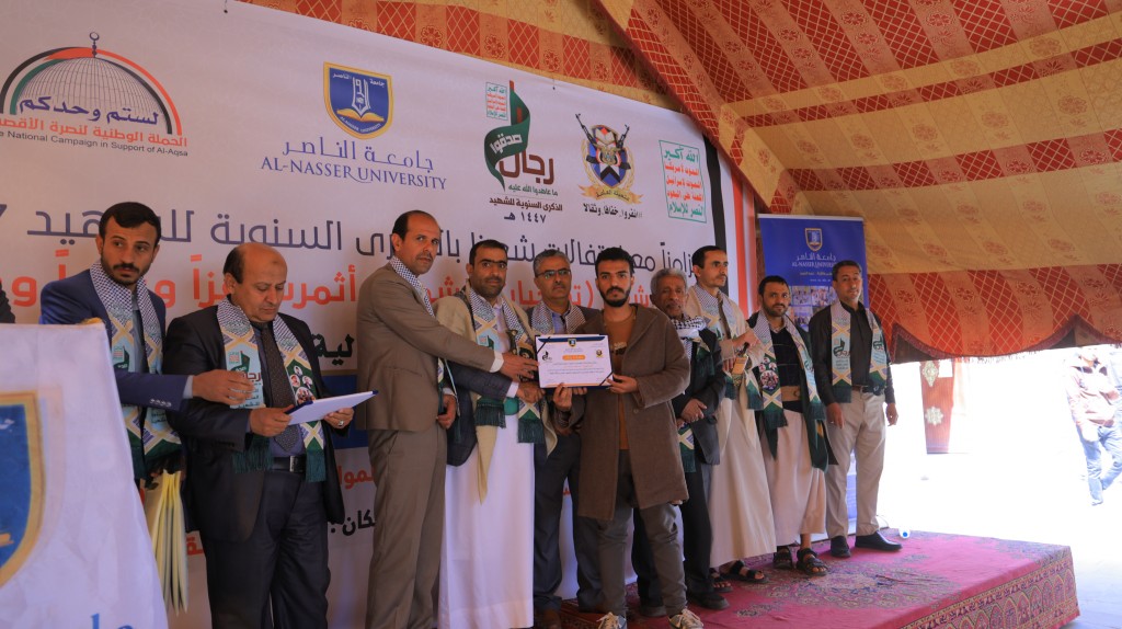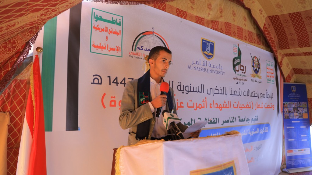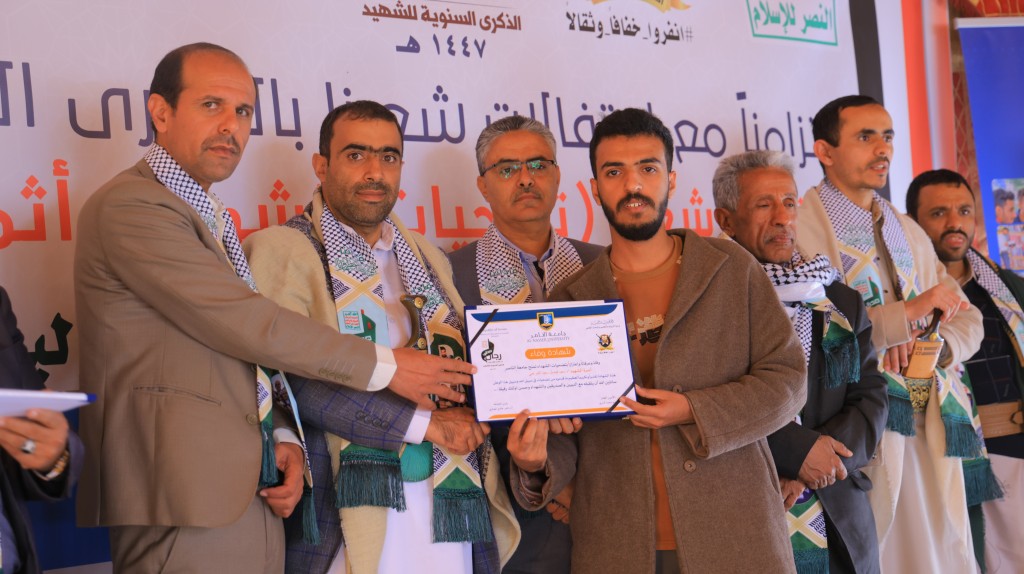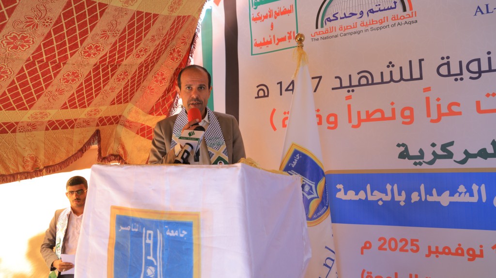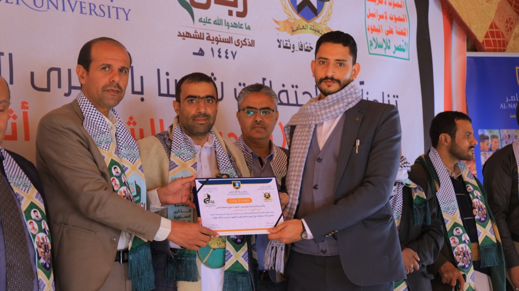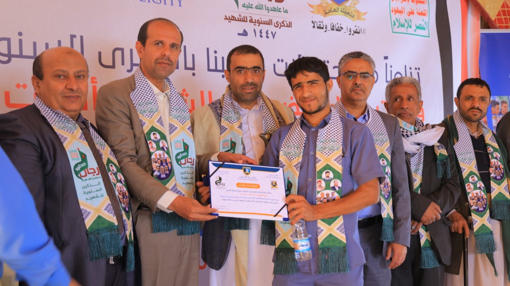 تزامنًا مع احتفالات شعبنا اليمني بالذكرى السنوية للش..ه.يد 1447هـ، وتحت شعار “تضحيات الش..ه.داء أثمرت عزًا ونصرًا وقوة”، أقامت جامعة الناصر صباح اليوم الفعالية المركزية للذكرى السنوية للش..هي د، والتي خُصصت لتكريم أسر الش..ه داء من منتسبي الجامعة وطلابها، وافتتاح معرض الش ه..داء في ساحة الجامعة.