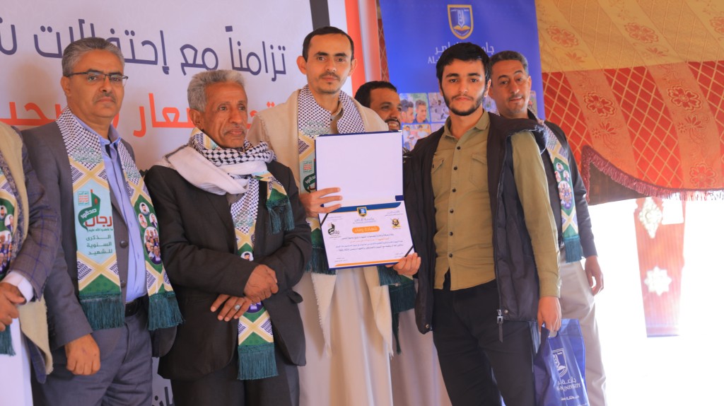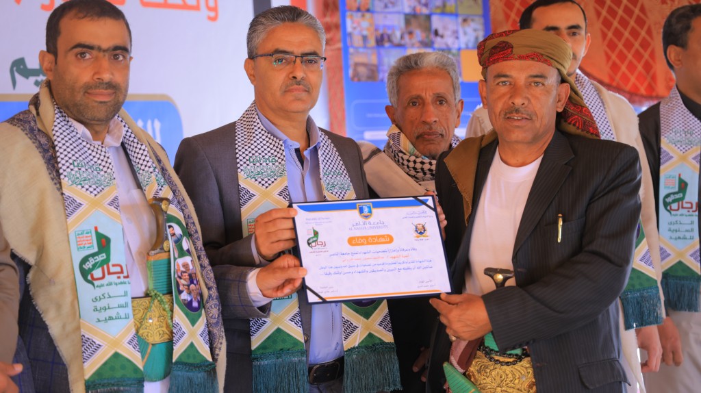 وفي ختام الفعالية، تم تكريم أسر الش.. هداء من منتسبي الجامعة وطلابها، واختُتمت الفعالية بافتتاح معرض الش.. هداء الذي ضم صورًا ومجسمات ووثائق تجسد ملا .حم البطولة والعطاء الخالد لش.. هداء الوطن.