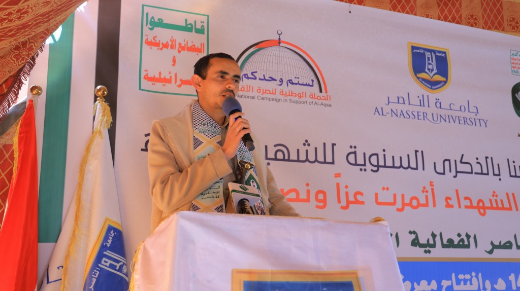 ثم ألقى الأستاذ أسامة المحطوري كلمة أكد فيها على فضل الج.. هاد وثقافة الاستش ..هاد ودورهما في تحقيق النصر والعزة التي يعيشها شعبنا اليوم.