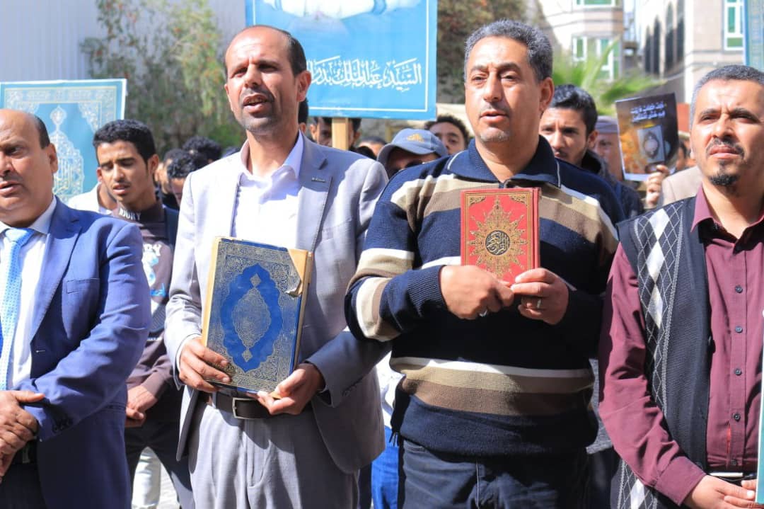 كما دعا البيان أبناء الشعب اليمني إلى الخروج المليوني في المظاهرات الكبرى استجابة لدعوة السيد القائد عبد الملك بدر الدين الحوثي (يحفظه الله)، تأكيداً للرفض الشعبي الواسع للإساءات المتكررة للقرآن الكريم والمقدسات الإسلامية، وتجديداً لثبات الموقف الإيماني في مواجهة الطغيان، ونصرة للشعب الفلسطيني المظلوم.