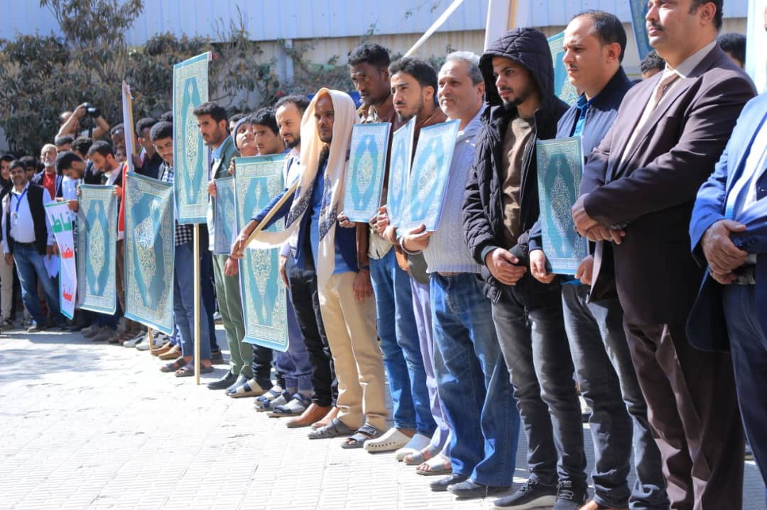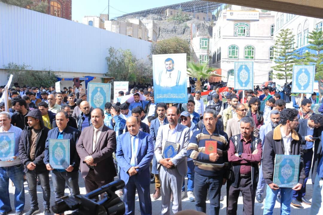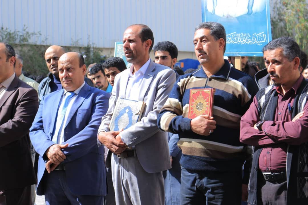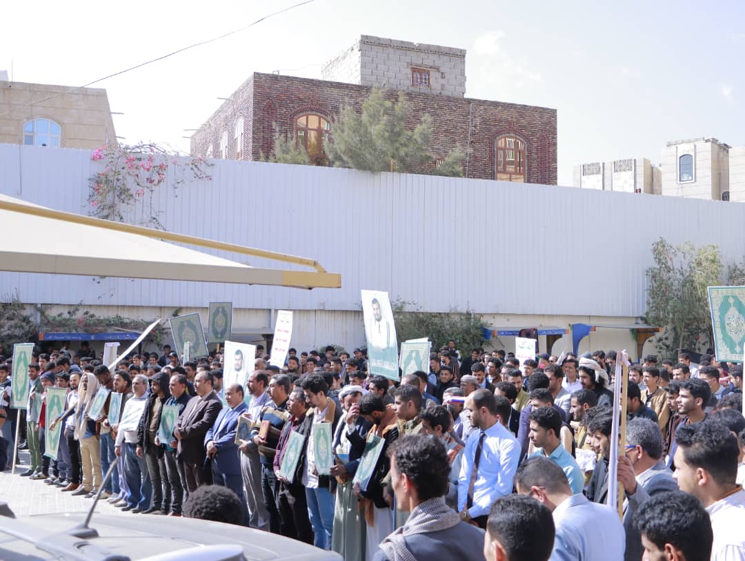 وأكد المشاركون أن هذه الإساءة ليست حادثة فردية أو معزولة، بل تأتي ضمن حرب ممنهجة تستهدف القرآن الكريم وهوية الأمة الإسلامية، بالتزامن مع استمرار جرائم العدو الصهيوني في فلسطين، واعتداءاته على لبنان وسوريا، وانتهاكاته المتكررة للمقدسات الإسلامية، وفي مقدمتها المسجد الأقصى، بدعم أمريكي وبريطاني وصمت دولي مخزٍ. وخلال الوقفة قام الطالب محمد الدحملي بالقاء قصيدة شعرية بهذة المناسبة.