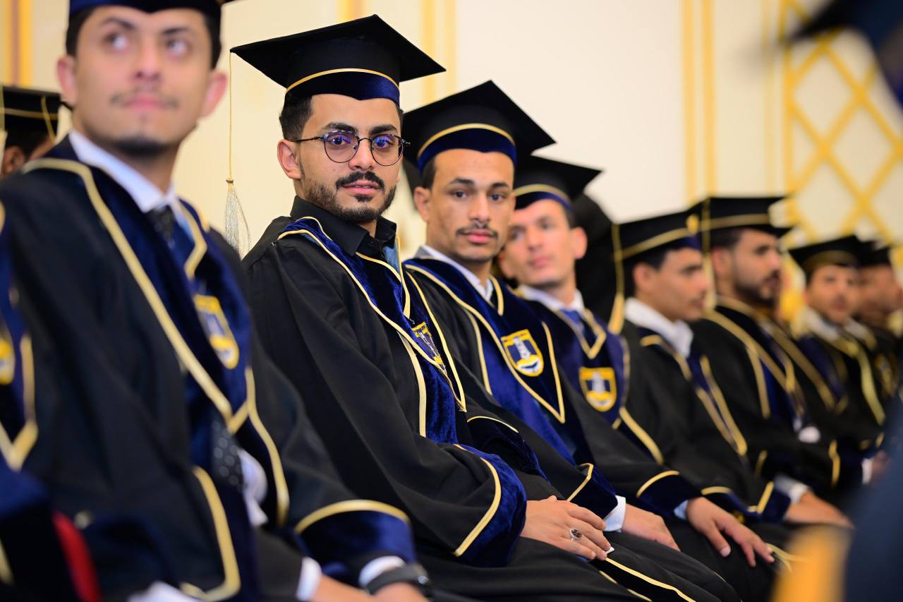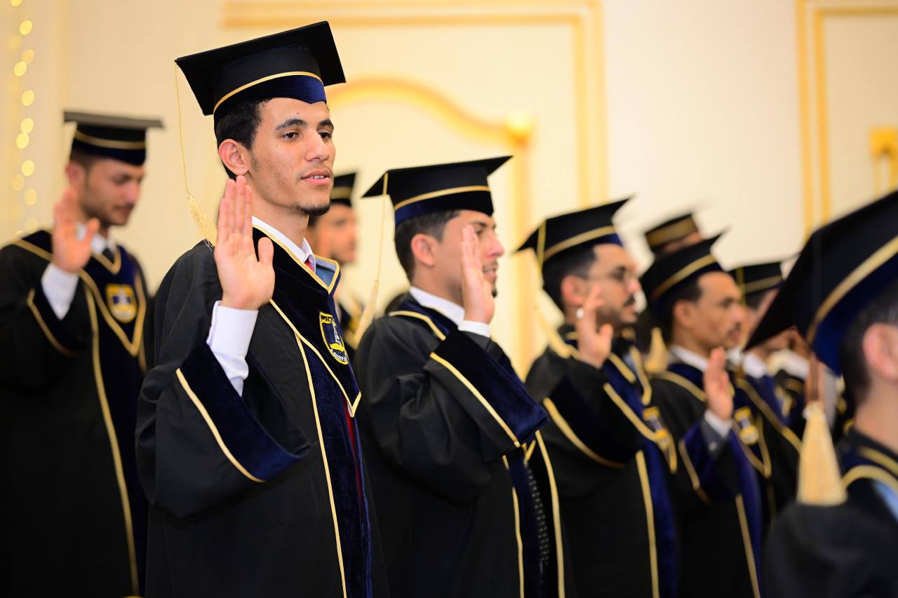 حثّهم فيها على مواصلة مسيرة التعلم والتطوير المهني، وعدم التوقف عند نيل الشهادة الجامعية، مؤكداً أهمية أن تكون تقوى الله أساس أهدافهم، وأن يستشعروا مسؤوليتهم تجاه قضايا الأمة والمجتمع الذي ينتظر منهم الكثير. كما عبّر عن خالص شكره وتقديره لأولياء الأمور الذين دعموا أبناءهم حتى نالوا ثمار جهدهم في هذا اليوم المبارك.