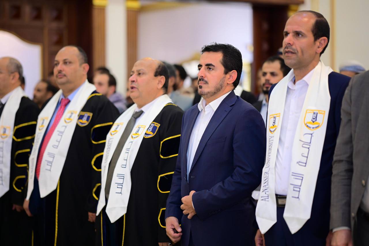 استُهلّ الحفل بآياتٍ من الذكر الحكيم، أعقبها النشيد الوطني للجمهورية اليمنية، ثم النشيد الوطني لدولة فلسطين، في لفتةٍ عبّرت عن الموقف الثابت للشعب اليمني وقيادة جامعة الناصر في دعم القضية الفلسطينية ونصرة الأشقاء في فلسطين، تأكيداً على الارتباط الوثيق بين رسالة التعليم وقيم العروبة والإنسانية.