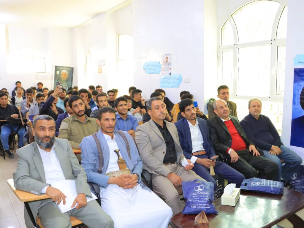 في إطار فعاليات أسبوع الش ه يد، أقام طلاب قسم تقنية المعلومات بجامعة الناصر فعالية توعوية بحضور رئيس الجامعة الأستاذ الدكتور ناصر هادي الموفري، وأمين عام الجامعة الأستاذ سليم السري، وعدد من عمداء الكليات ومشرفي الأقسام الأكاديمية، إلى جانب جمع غفير من طلاب الجامعة من مختلف التخصصات.