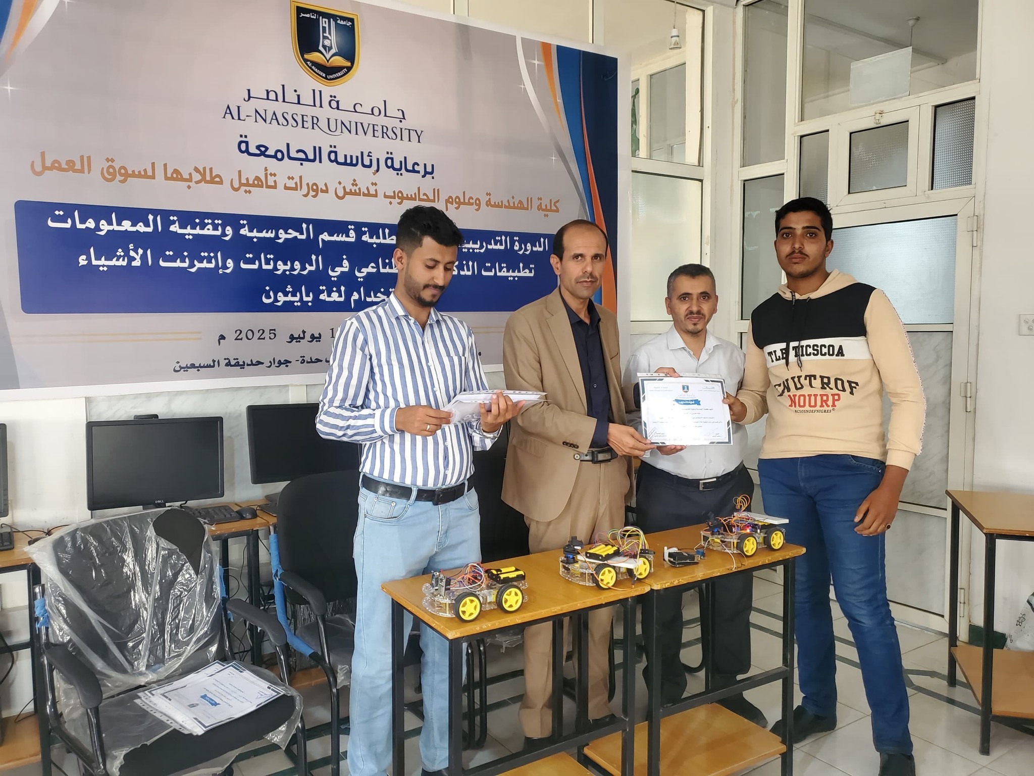 يسعدنا في جامعة الناصر أن نقدّم لطلبتنا برنامج الذكاء الاصطناعي، أحد أكثر التخصصات تطورًا وطلبًا في عصرنا الحديث، نؤمن بأن هذا التخصص ليس مجرد دراسة نظرية، بل هو بوابة نحو المستقبل، حيث نعمل على تأهيل طلابنا بالمعرفة والمهارات اللازمة لصناعة حلول ذكية تواكب التحولات الرقمية العالمية، تم تصميم البرنامج بعناية ليركز على الجوانب التطبيقية والعلمية، بما يتماشى مع معايير الجودة العالمية وسوق العمل المتجدد، نطمح من خلال هذا البرنامج إلى تخريج كوادر وطنية قادرة على الإبداع، الابتكار، والمنافسة في مجالات الذكاء الاصطناعي محليًا وعالميًا.